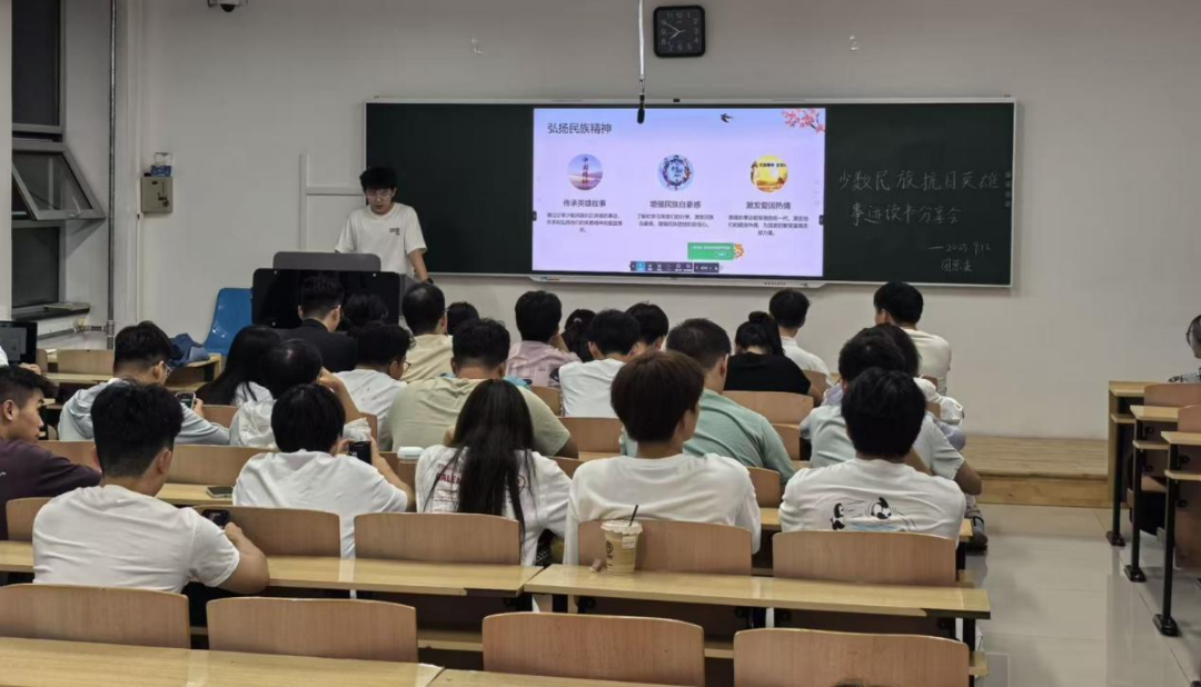 为纪念中国人民抗日战争胜利80周年,加强民族团结进步教育,弘扬爱国主义精神,9月12日晚,土木工程系在交通楼j301教室举办“传承英雄精神,铸牢团结根基”少数民族抗日英雄事迹读书分享会。60余名学生党员、入党积极分子参加活动,共同缅怀少数民族英雄在抗战中的光辉事迹。
