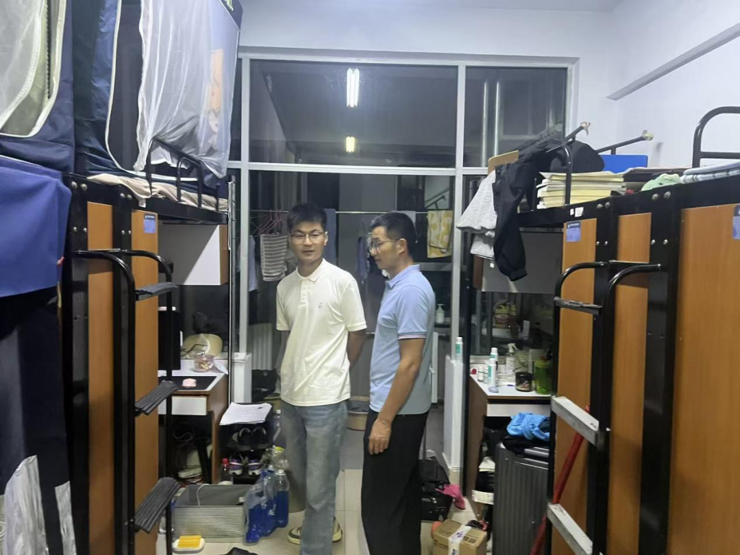 为进一步强化宿舍安全管理,排查安全隐患,营造整洁、有序、安全的住宿环境,切实保障学生的人身与财产安全,2025年8月30日晚,土木工程系党总支副书记张兰根、辅导员石硕及学生干部组成专项检查小组,对全系学生宿舍开展了安全专项检查工作。